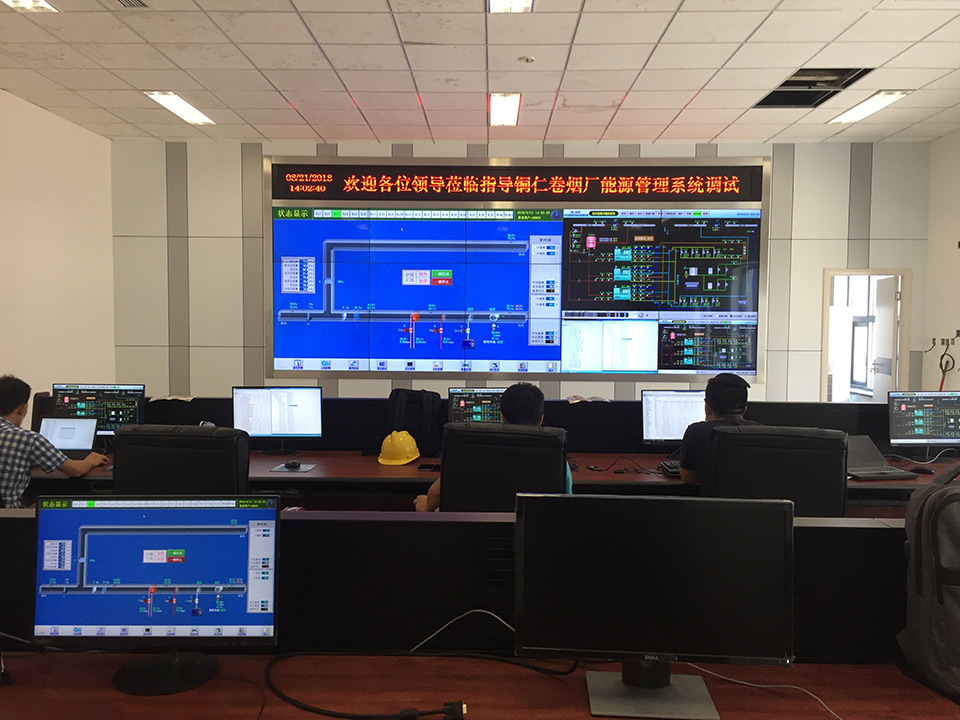 可視化工程服務商為銅仁卷煙廠建設了生產指揮調度中心、安防監控中心及能源管理中心。三個大型的現代化辦公室內,生產車間、流水線乃至整個廠區的實際情況及現狀經由視頻信號及數字信號投放在大屏顯示系統上。能人科技為銅仁卷煙廠設計的集成方案是定制化的,從室內設計學角度出發,到空間利用,到人體力學,再到環保,考慮到方方面面。